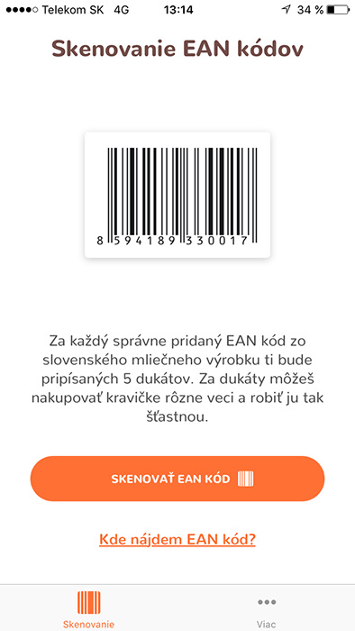 Ak už máte kravičku adoptovanú, po nasnímaní EAN kódu zo slovenského mliečneho výrobku označeného SK ovál kódom, dostanete odpoveď: EAN kód bol premenený na dukáty.